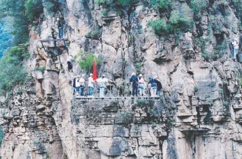 氛圍感拉滿,“中國紅”閃耀峽谷。百家?guī)r廣場上,21米長、14米寬的巨幅五星紅旗由數(shù)萬名游客接力傳遞,眾人齊聲高唱《歌唱祖國》,形成“紅旗漫卷太行山”的壯麗畫卷;紅石峽、小寨溝等景點(diǎn)隨處可見游客手持國旗合影,躍動的“紅”與靜謐的“綠”交織成節(jié)日里最動人的風(fēng)景。