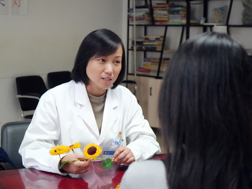 市第四人民醫(yī)院精神二科主治醫(yī)師牛莉莉為學習障礙患者進行心理輔導(dǎo)。