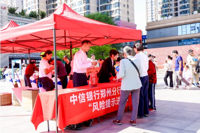 在河南金融監(jiān)管局、河南省銀行業(yè)協(xié)會、河南省保險行業(yè)協(xié)會等單位指導(dǎo)與支持下,9月16日—9月20日,中信銀行鄭州分行通過“進(jìn)商圈”“迎雙節(jié)”等活動,以“風(fēng)險提示送上門”為核心,開展多場金融教育宣傳活動,將金融知識普及與市民生活深度融合。